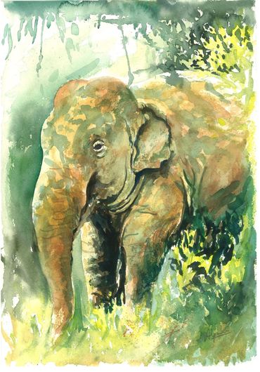Translating to "elephant", this majestic beast is an inspiring subject for Alpana. A firm believer of "let(ting) wildlife be wild", she enjoys watching elephants in their natural habitat - at work and at play.